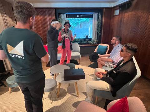 Nach Drehschluss wurden wir dann jedoch mit einem leckeren 3-Gänge Menü verwöhnt. Danach hiess es Film ab und get ready für die Filmpremiere! Alle fünf Kurzfilme wurden gezeigt - solche Meisterwerke hat Quentin Tarantino schon lange nicht mehr gesehen! Mittels Applaus wurden der beste Hauptschauspieler, der beste Nebendarsteller und der beste Film gekürt.