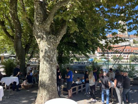 Aber ganz von Anfang: Begonnen hat der Tag noch ganz harmlos auf der kleinen Schanze, mit wunderschöner Aussicht auf Bern. Nach einem kurzen Spaziergang gelangten wir zum Eventraum beim Schwellenmätteli an der Aare. Dort wurde uns bei Kaffee und Gipfeli erklärt, was wir in den nächsten drei Stunden tun werden.